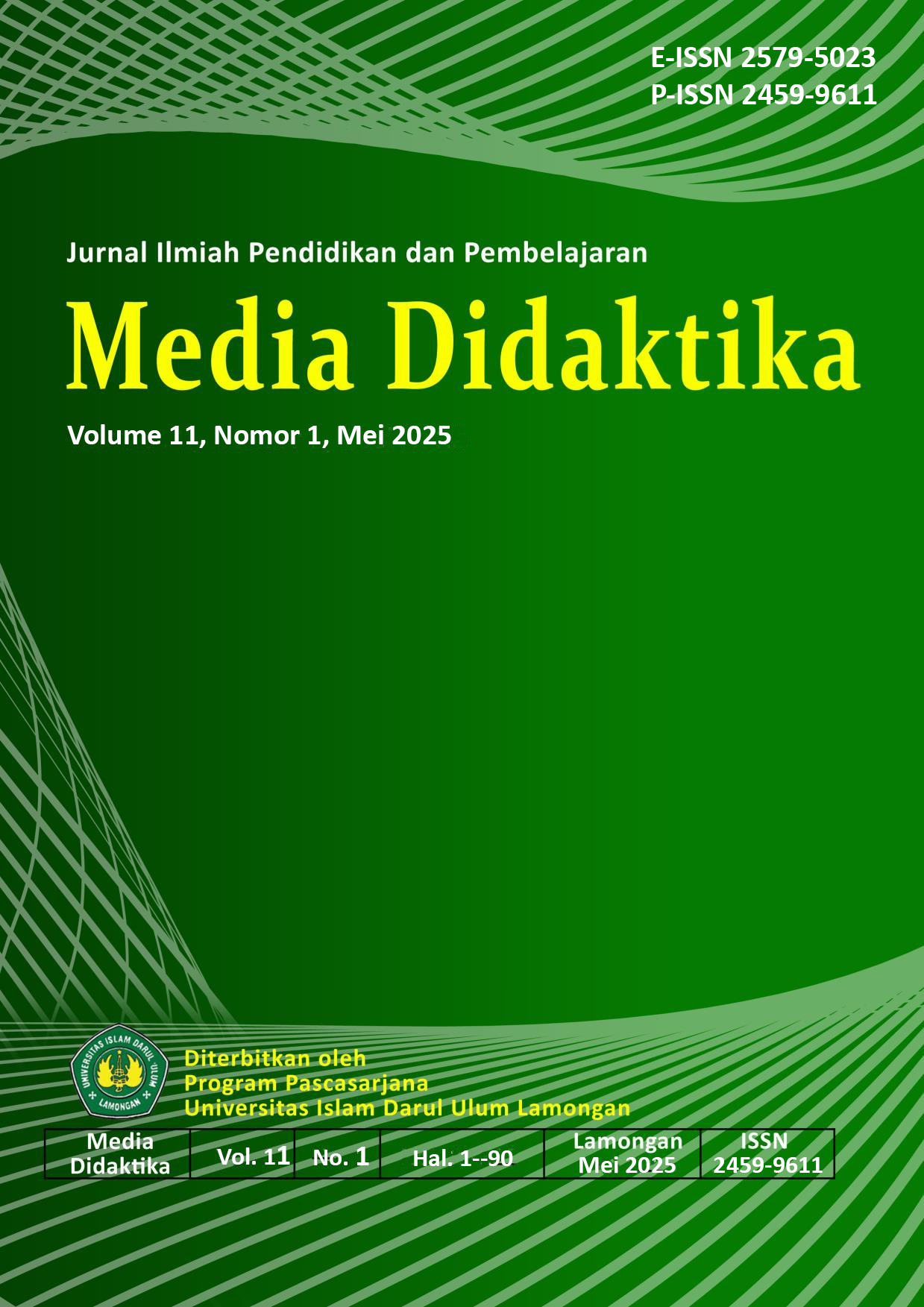 MEDIA DIDAKTIKA: Jurnal Ilmiah Pendidikan dan Pembelajaran. The journal is published by the Postgraduate Program of Islamic University Darul Ulum (Unisda) Lamongan as a medium for the dissemination of research results, theoretical developments, and scientific papers on education and learning. This journal is published twice a year: May and November; first published in May 2015. Since Media Didaktika is indexed by SINTA 5, it contains 10 articles per issue afterward.
