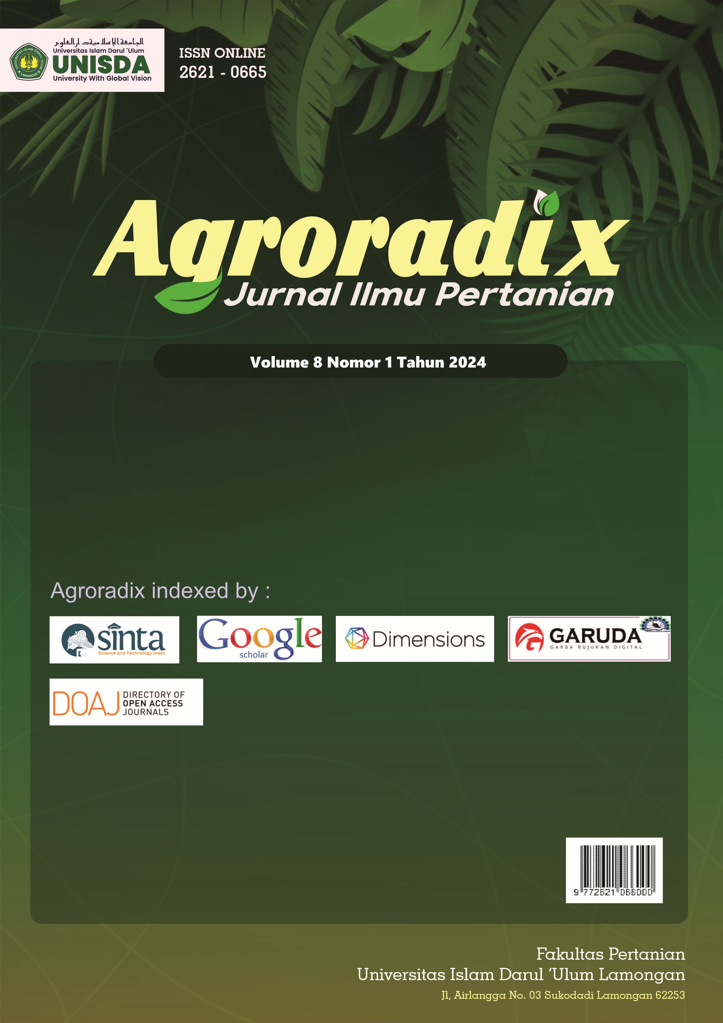 AGRORADIX : Jurnal Ilmu Pertanian E-ISSN : 2621-0665 Universitas Islam Darul 'Ulum (UNISDA) Jl. Airlangga 03 Sukodadi Lamongan, Jawa Timur 62253Telp.(0322) 390497 Email: agroradix2017@gmail.com/ agroradix@unisda.ac.id / Istiqomah@unisda.ac.id