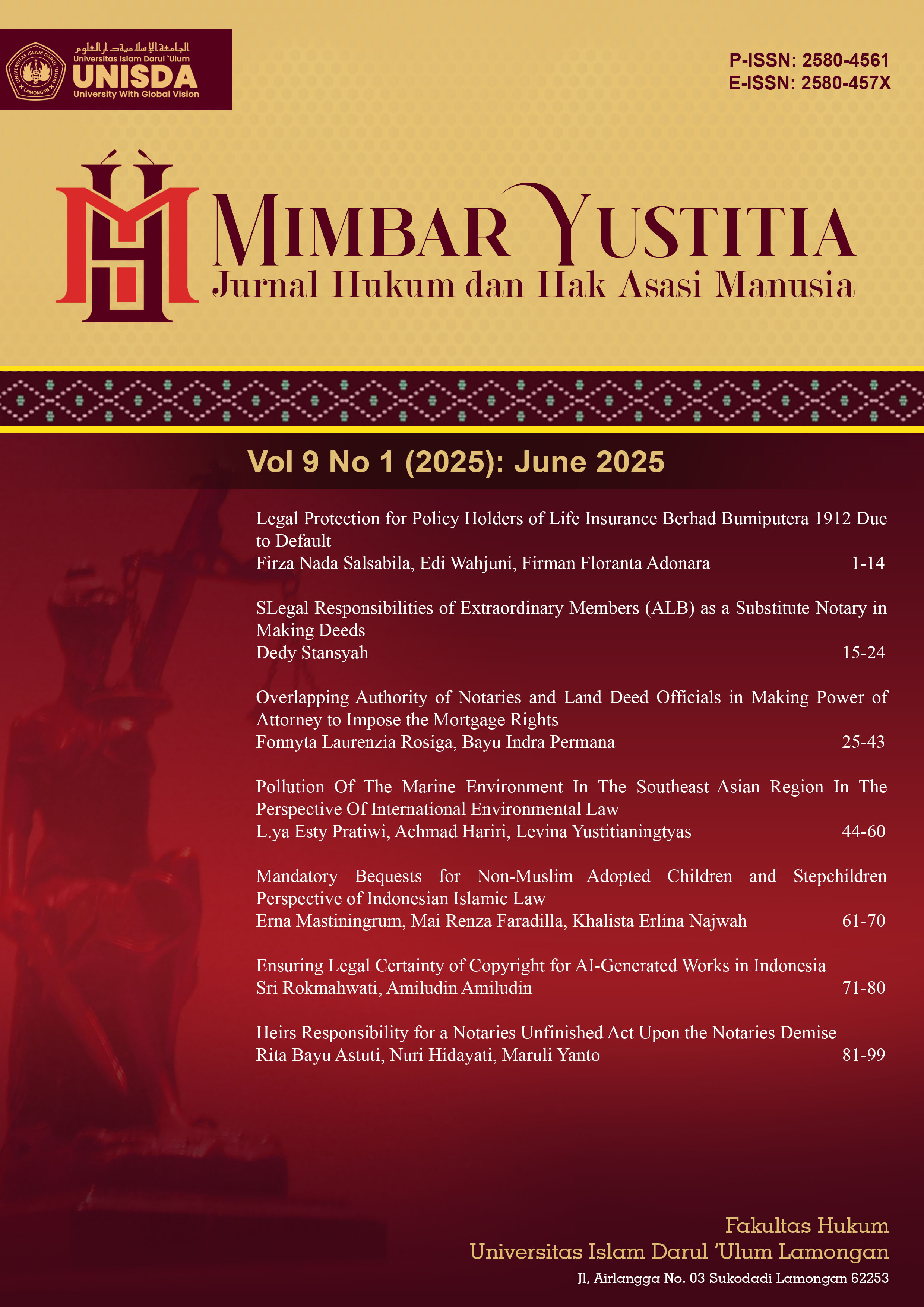 The rapid advancement of Artificial Intelligence (AI) technology has significantly transformed the creative industry, enabling machines to autonomously generate original works such as music, text, and visual art. This phenomenon has posed fundamental challenges to the copyright legal framework in Indonesia, particularly concerning authorship, ownership, and the protection of AI-generated works. This study aims to examine the extent to which Indonesia’s copyright law provides legal certainty for works generated by AI, while identifying gaps and potential reforms needed to address emerging issues in the digital era. The research employs a normative legal approach through library research, analyzing relevant statutory regulations, including Law No. 28 of 2014 on Copyright, doctrinal interpretations, and comparative literature on AI and copyright. The analysis focuses on the definition of authorship, the scope of protection, and the implications of legal uncertainty regarding AI-generated works. The results reveal that Indonesia’s copyright law remains anthropocentric, as it recognizes only natural persons or legal entities as authors. Consequently, the current legal framework does not explicitly accommodate the status of AI-generated works, leading to a legal vacuum and uncertainty over copyright ownership and protection. This gap may hinder innovation, reduce legal clarity for creators, developers, and users, and create potential conflicts in the creative economy. The study concludes that Indonesia’s legal system is not yet prepared to address the challenges posed by AI-generated works. Regulatory reform is necessary to provide legal certainty, balance the interests of stakeholders, and align Indonesia’s copyright law with global developments in digital regulation.